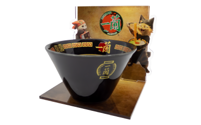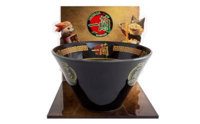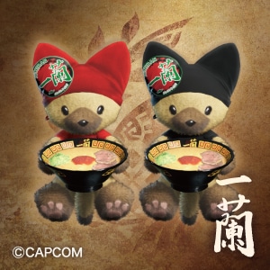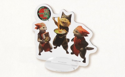 一蘭の制服を身にまとったアイルーと、一蘭ラーメンを組み合わせた本企画限定デザイン。 デスクやコレクション棚を彩る、ファン必携のアイテムです。
