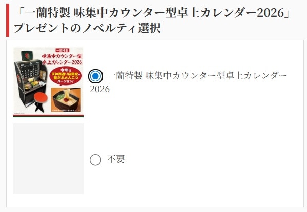 一蘭特製『味集中カウンター型卓上カレンダー2026』をプレゼントいたします。